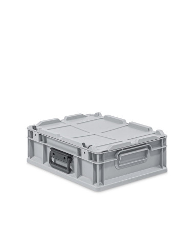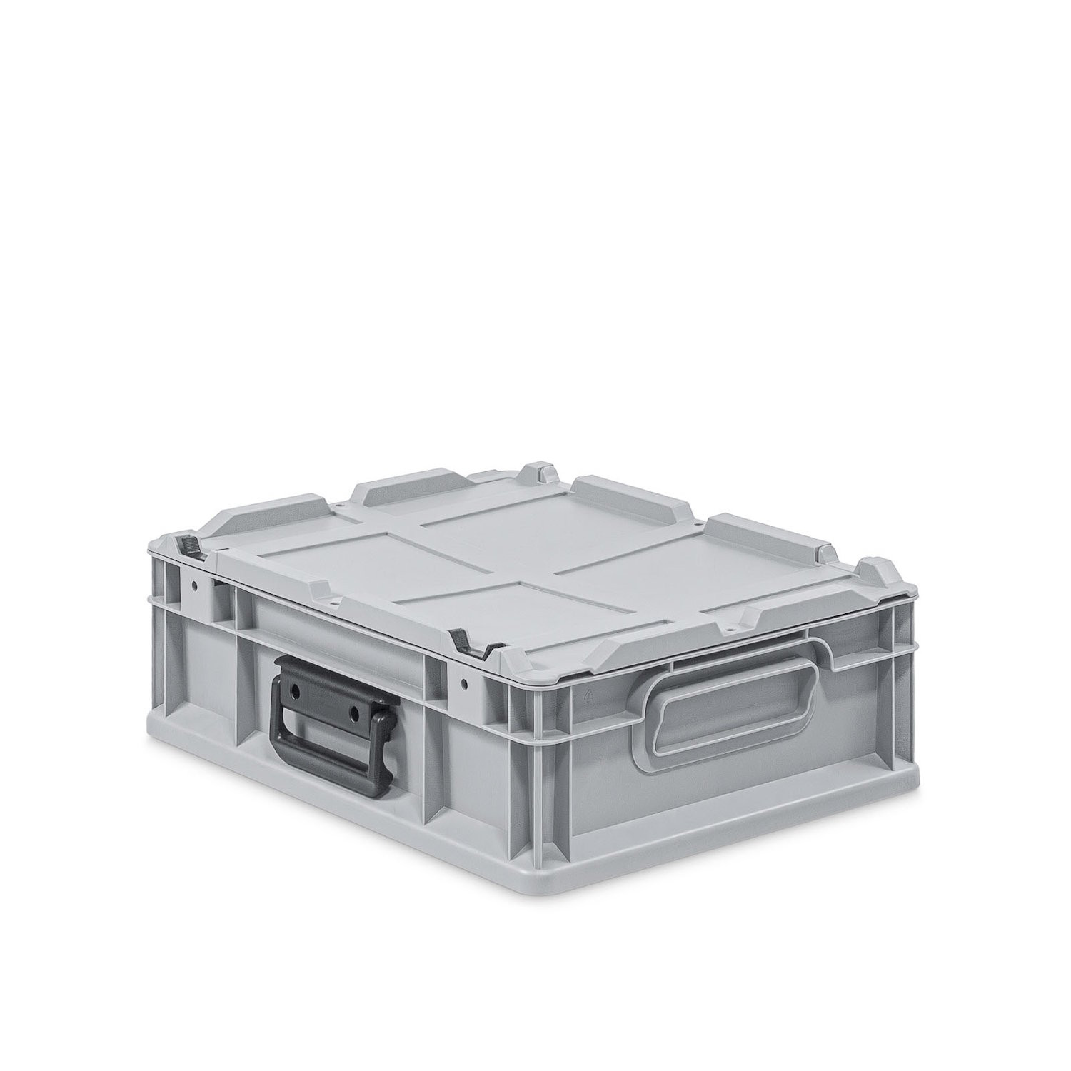 Die Euroboxen NextGen Portable sind mit einem Koffergirff und einem Deckel ausgestattet. Die Eurokästen mit Koffergriff können so ideal transportiert werden. Durch den Griff lässt sich die Eurobox in einer Hand tragen und zum Beispiel als Werkzeugkoffer nutzen. In der Box sind die gelagerten Inhalte sicher aufbewahrt und vor Verschmutzung geschützt. Unsere Euroboxen aus Kunststoff sind ideal für Transport, Aufbewahrung und Lagerung verschiedenster Waren. Unsere Euroboxen sind als Palettenboxen verwendbar und damit stabil und sicher auf jeder Palette mit Euronorm stapelbar. Der umlaufende Stapelrand wirkt selbstzentrierend und sorgt für einen sicheren Stand der Euroboxen. Die Euroboxen lassen sich auch für flexible Regalsysteme nutzen, indem man geschlossene oder offene Boxen übereinander stapelt.