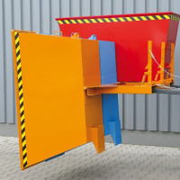- Sichere Entleerung: Die Selbstkipperfunktion wird über einen Seilzug vom Staplersitz ausgelöst; inklusive Kettensicherung gegen ungewolltes Abkippen.