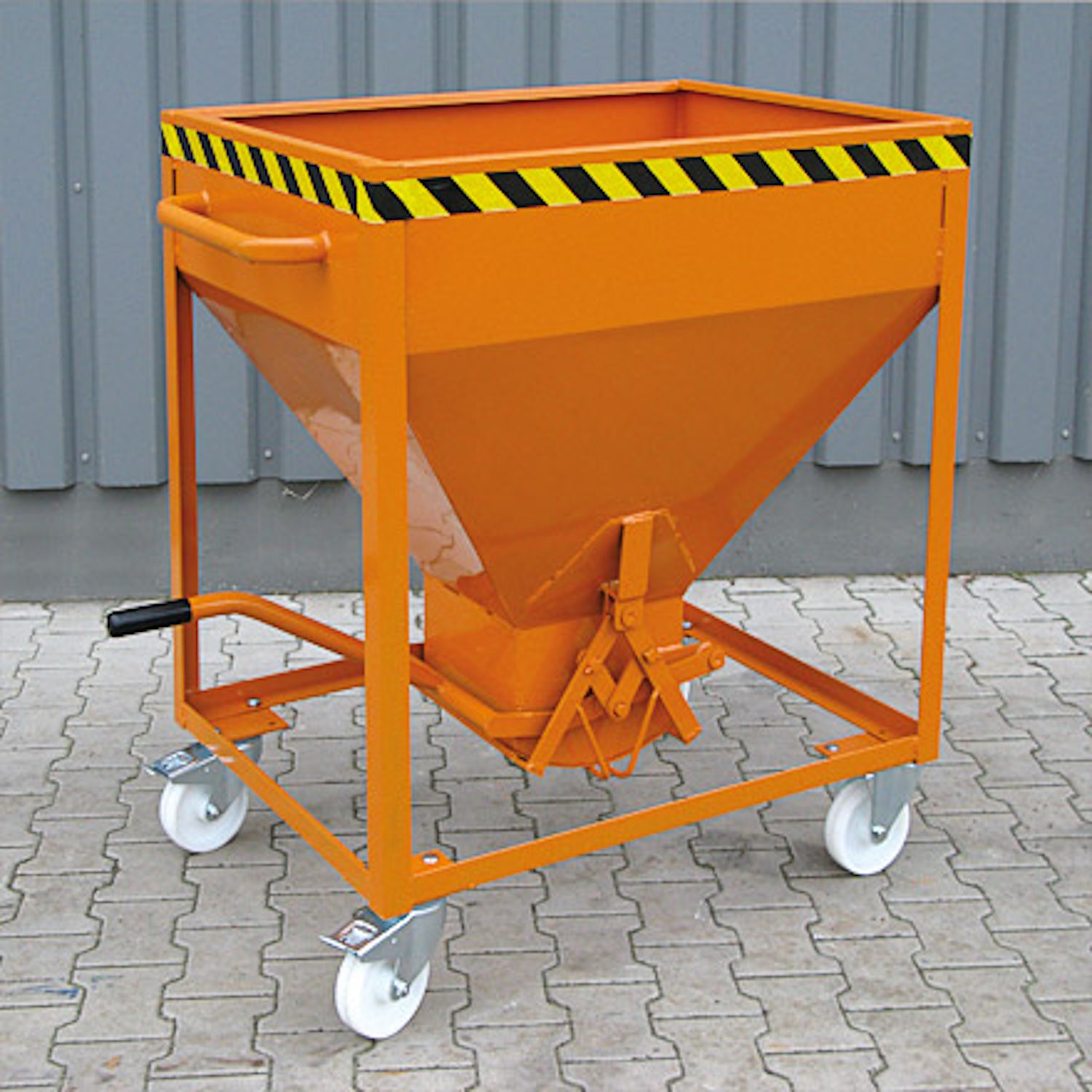 - Sicherer Stand: Feststeller an den Lenkrollen sichern den Silowagen zuverlässig gegen Wegrollen beim Befüllen oder Entleeren.