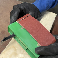 - Der Kunststoffschleifklotz sorgt für einen festen Halt der Schleifbänder und effizientes Arbeiten