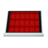 Lieferzeit 2 - 3 Wochen Zubehör für Material- & Schubladenschrank Metalleinteilung - für den 700-mm stationären Schubladenschrank Karl H Bartels GmbH Vertrieb Ab € 33,32 inkl. MwSt. € 28,00 exkl. MwSt. Sets inklusive Seitenfachschienen Einteilung in 6 - 24 Fächer Für Breite 700 mm Verzinktes Blech Zum Produkt