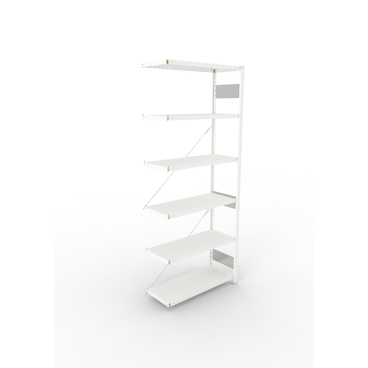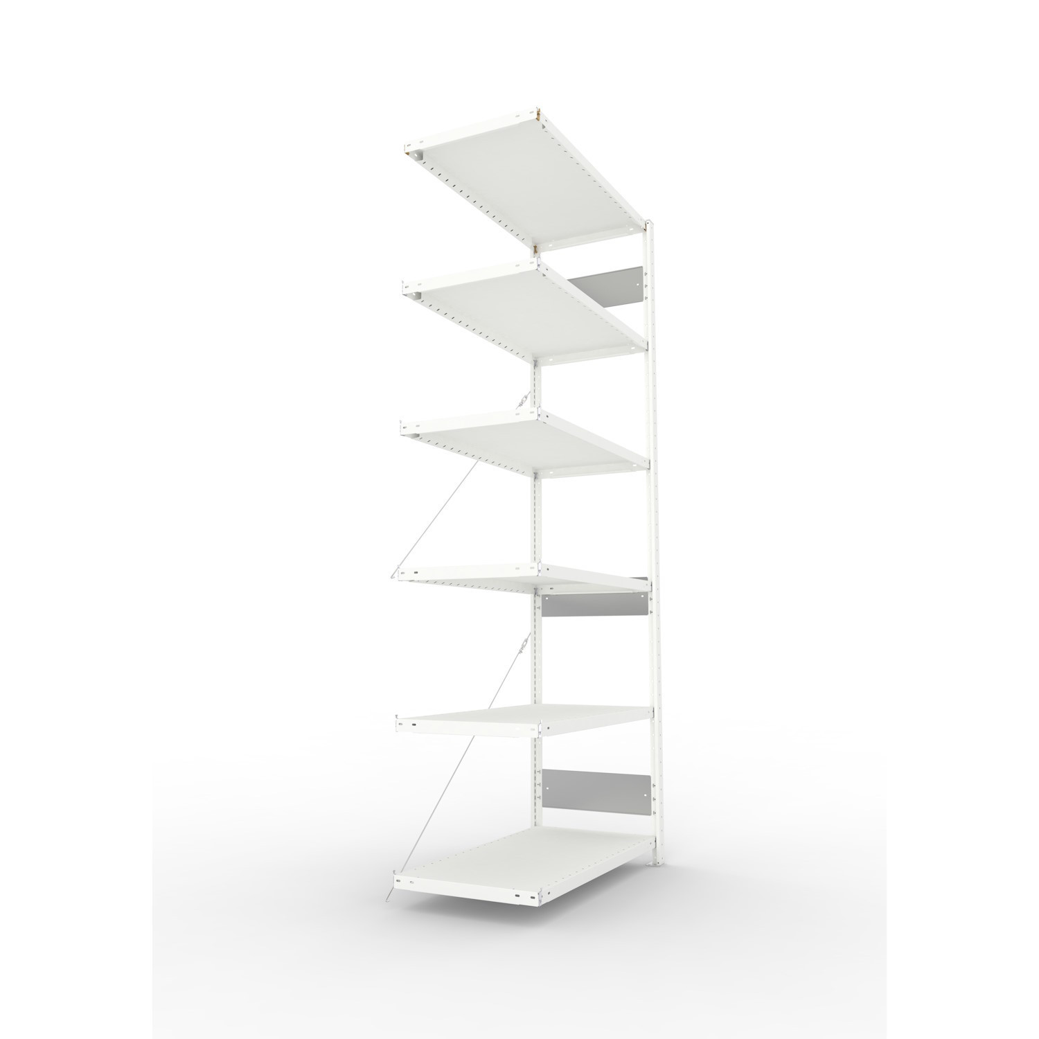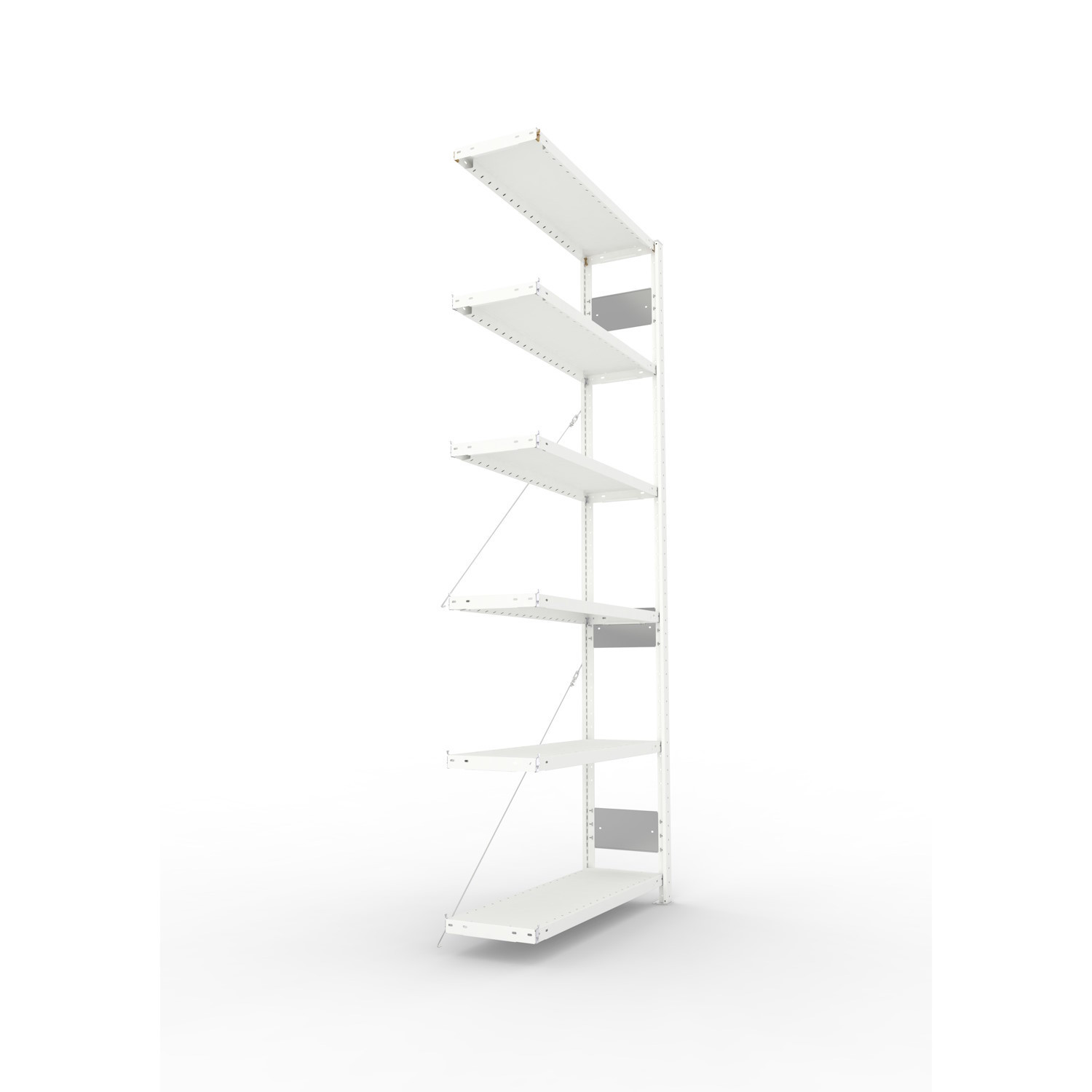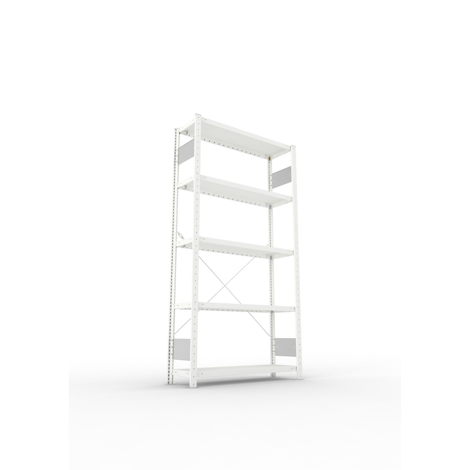 Regale mit dem Höhen-/Tiefenverhältnis ≥ 4 : 1 gegen Kippen sichern (Wand- oder Fußverankerung). Fach-/Feldlasten gelten bei gleichmäßig verteilter Last.