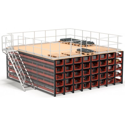 Ideal für Hallen oder niedrige Lagerräume - die kompakte Stahlschweißkonstruktion ist in modularer Wabenbauweise konstruiert und kann nahezu unbegrenzt erweitert werden.