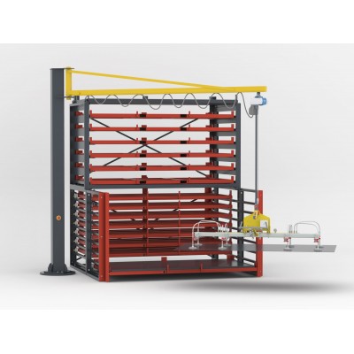3 in 1: Blecheinlagerung – Säulenschwenkkran – Vakuumheber