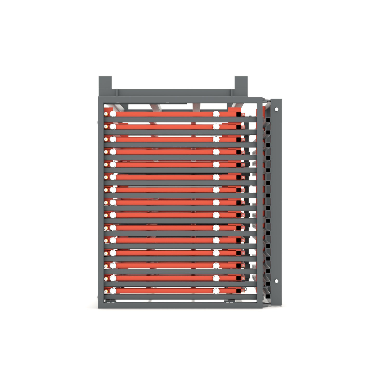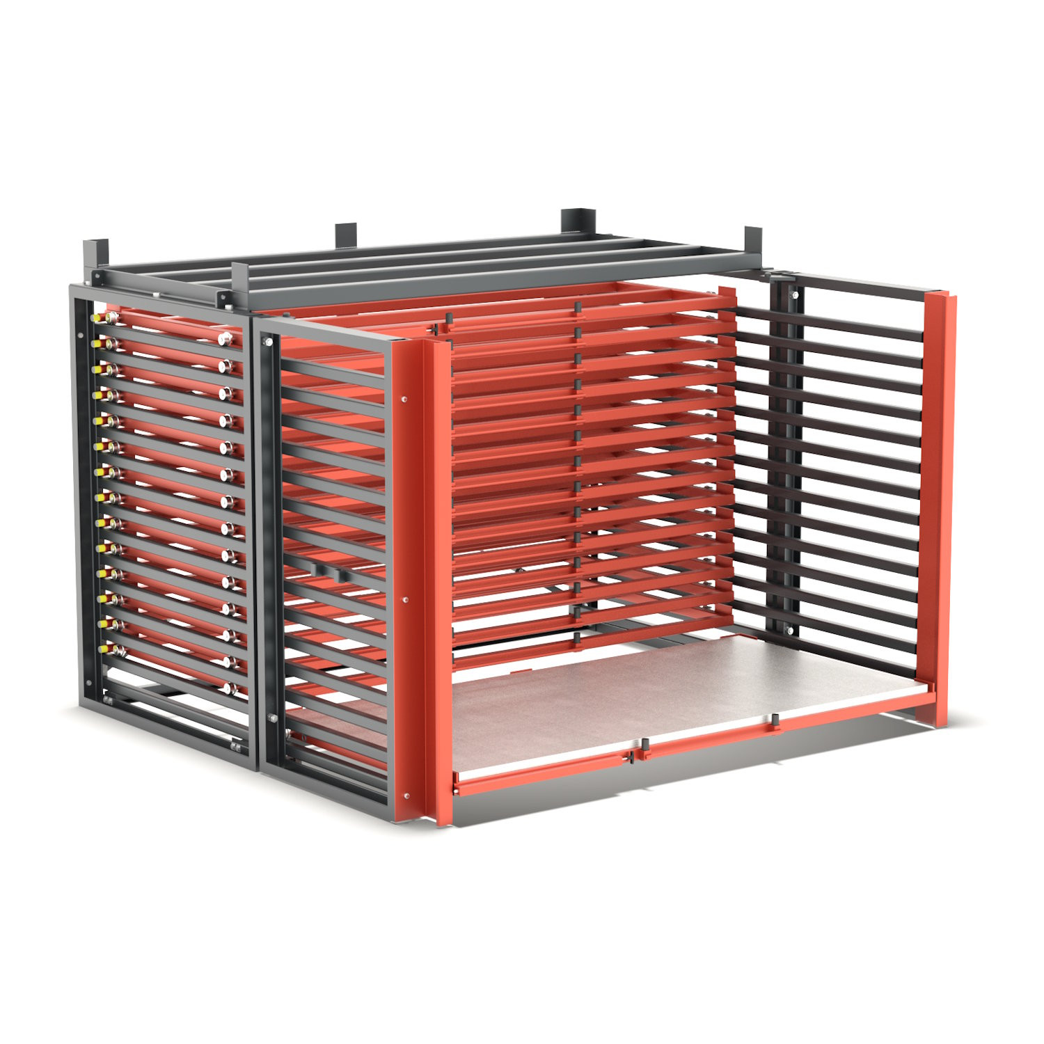 - Sortenreine Organisation: Das System, mit 13 oder 16 Ebenen, ist ideal für die übersichtliche Trennung verschiedener Materialgüten oder Blechstärken geeignet.