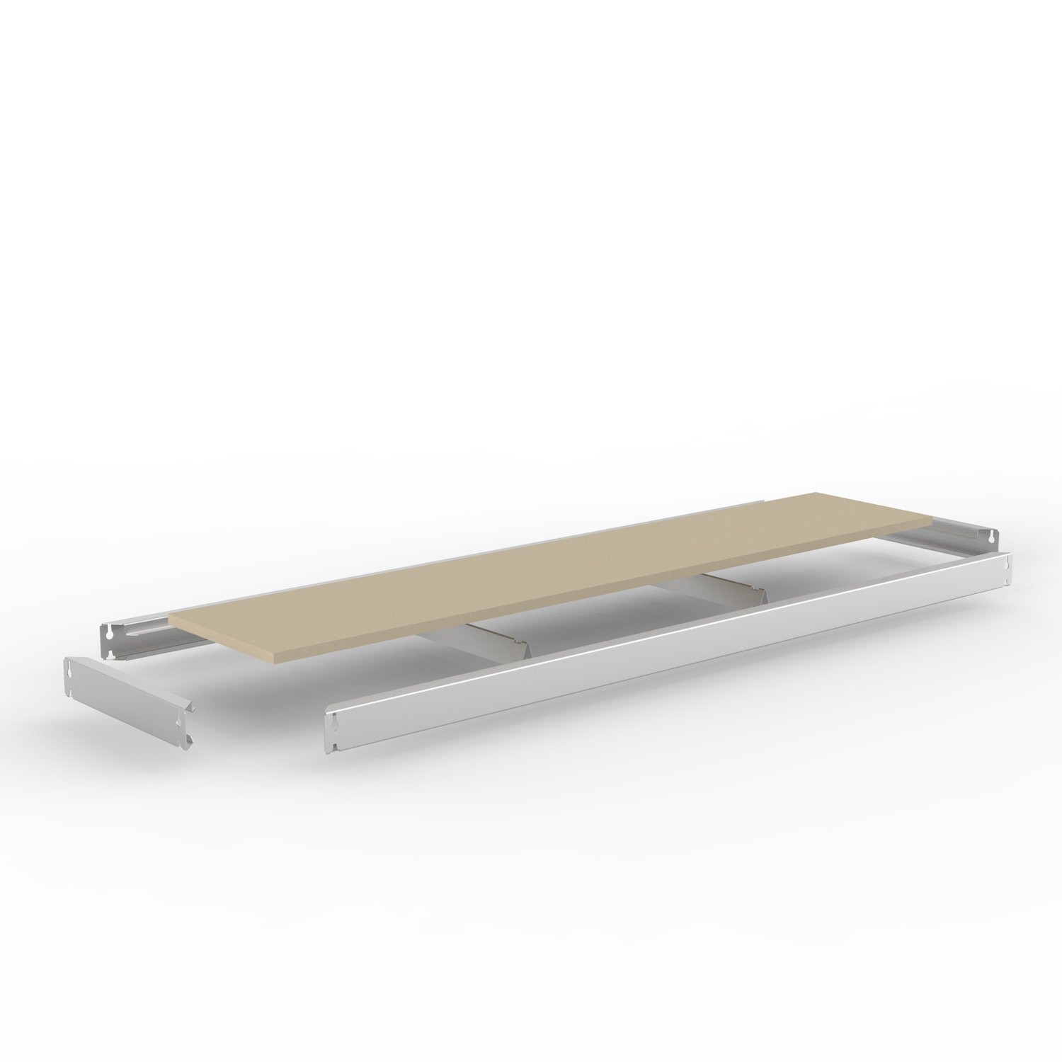 Technisch entspricht die Zusatzebene dem hohen Standard des Grundregals: Die verzinkten Stufenholme bilden einen stabilen Rahmen, in den die Spanplatte sicher eingelegt wird. Die zwei mitgelieferten Unterzüge verhindern effektiv ein Durchbiegen der Platte, selbst bei den großen Spannweiten von bis zu 2.500 mm. Da das SPEED-RACK System auf Schraubverbindungen verzichtet, bleibt die Konfiguration Ihres Lagers jederzeit flexibel – die Ebene kann ohne großen Aufwand demontiert oder in der Höhe versetzt werden, um stets die effizienteste Lagerdichte zu gewährleisten.