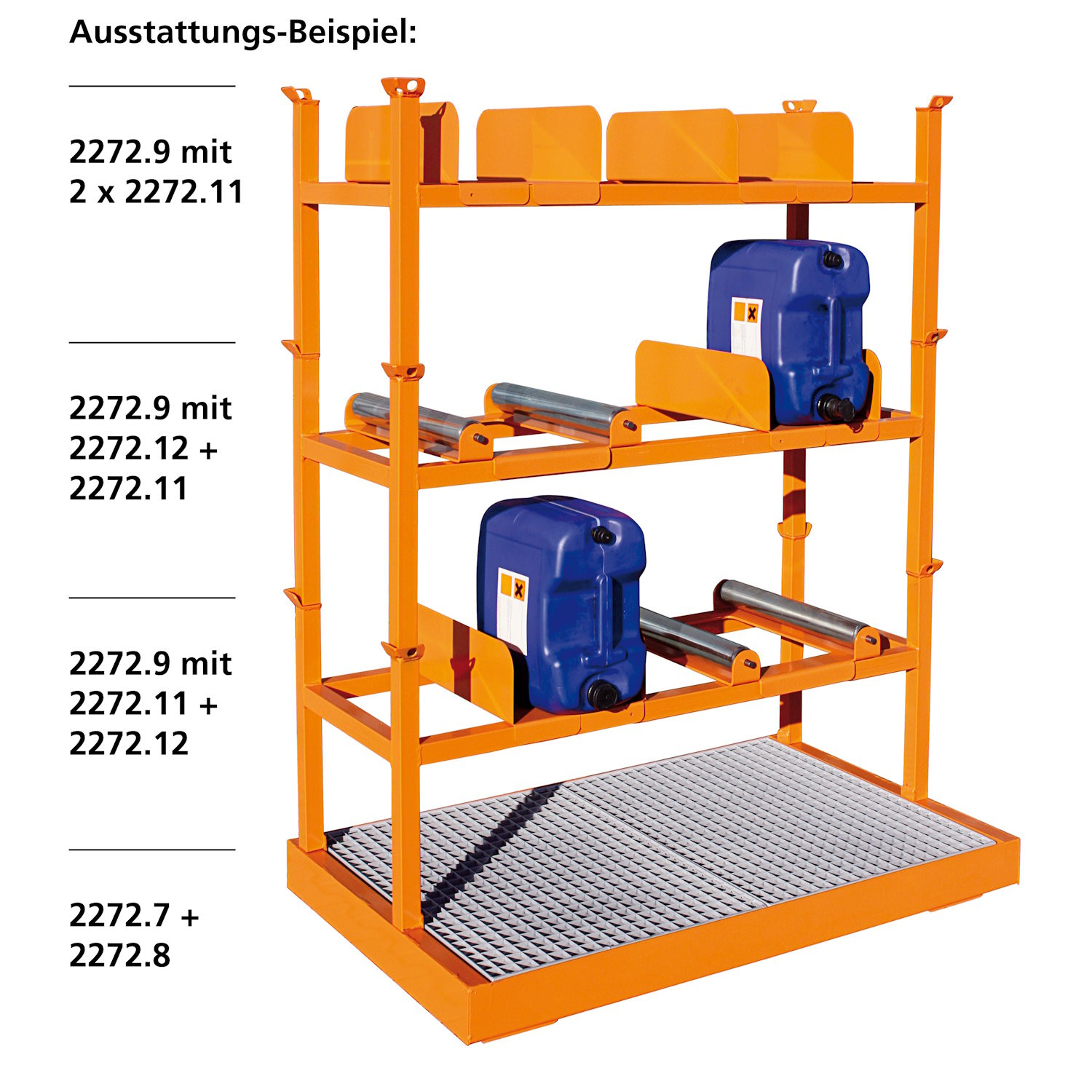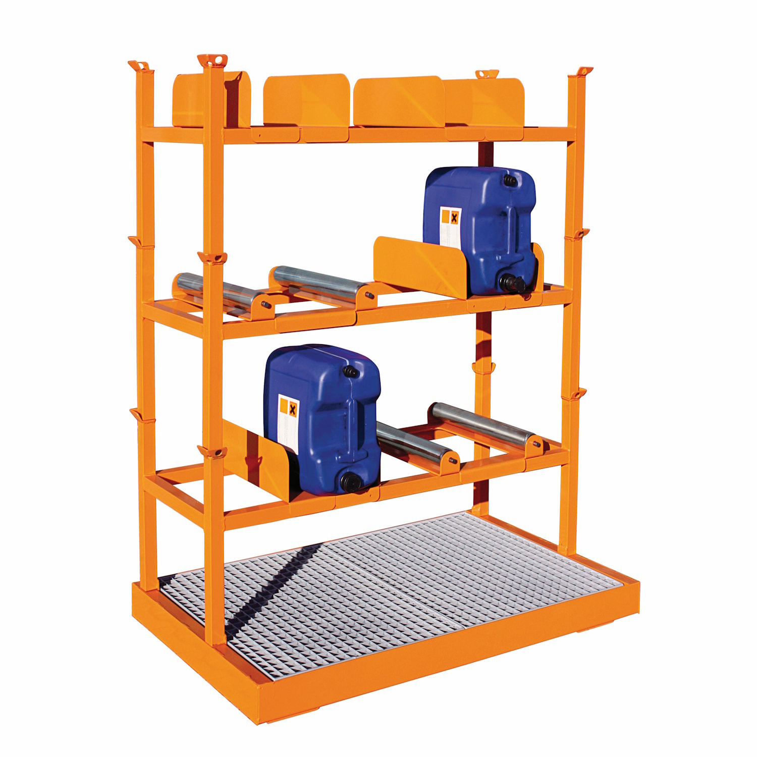 - Individuelle Konfiguration: Das modulare System ermöglicht die Kombination von Auffangwannen mit verschiedenen Stapelgestellen für Kleingebinde oder Fässer.