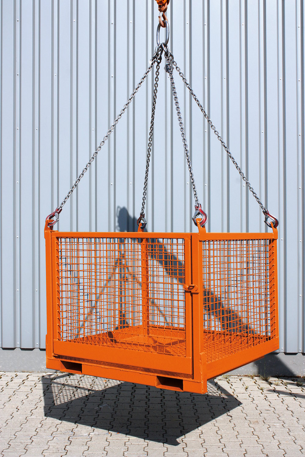 Die Ladebox für Stapler und Kran ist eine robuste und vielseitige Schwerlast-Transportbox für den industriellen Einsatz mit einer Nutzhöhe von 1.000 mm. Dank der massiven Rohrrahmenkonstruktion und Traglasten von bis zu 3.000 kg eignet sie sich ideal für den Transport von schweren Ladegütern, die direkt auf Europaletten eingestellt werden können. Die Box ist serienmäßig mit praktischen Einfahrtaschen für den Stapler und stabilen Kranösen ausgestattet, was eine flexible Handhabung auf dem Werksgelände und der Baustelle ermöglicht. Die Wände aus Drahtgitter und die Flügeltür gewährleisten eine gute Übersicht und einfachen Zugriff. Der Boden aus Riffelblech bietet Rutschhemmung.
