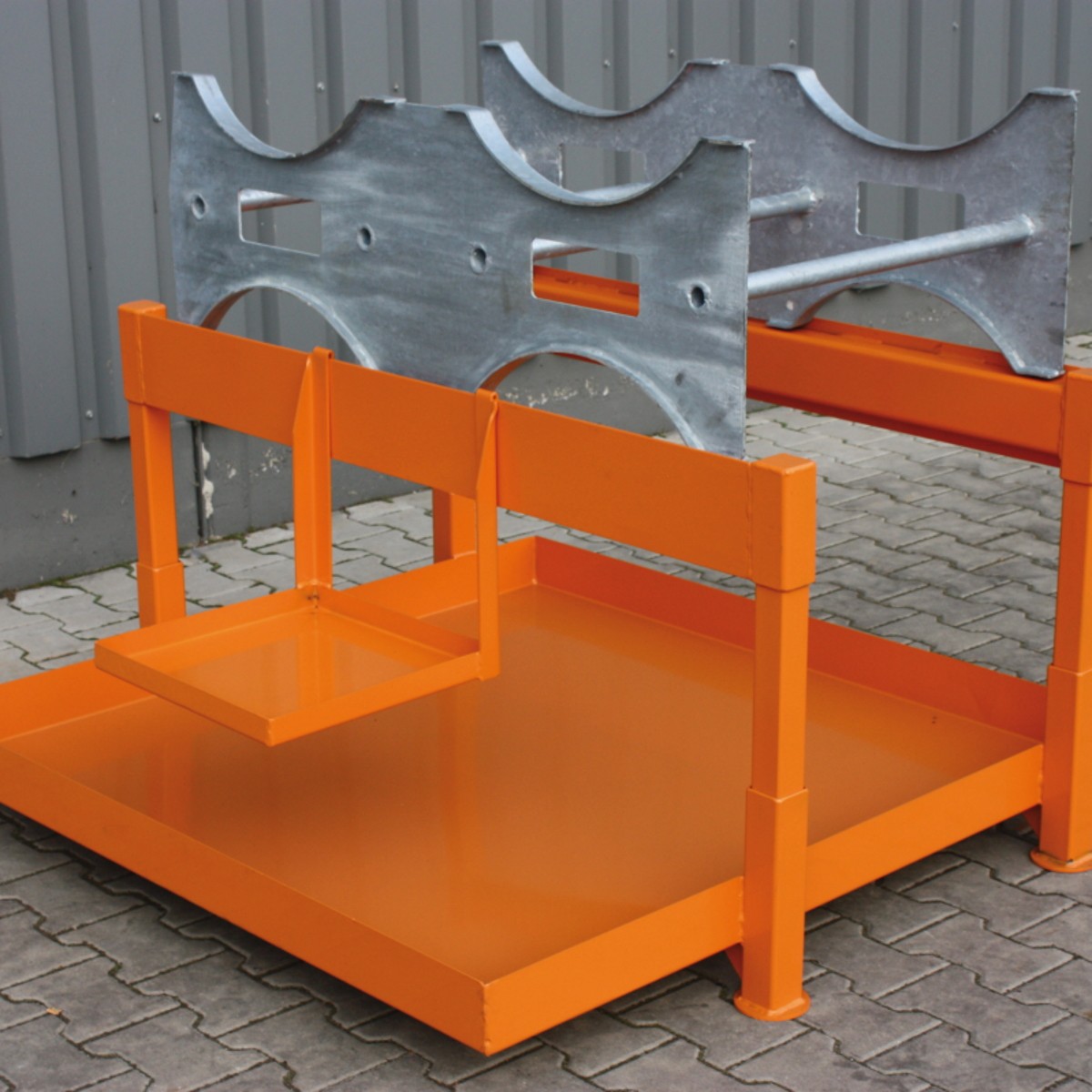 - Hohe Formstabilität: Eine verwindungsfreie Stahlkonstruktion mit verstärkten Auflagekanten garantiert, dass die Fässer sicher im Lot liegen und die Palette auch bei voller Beladung formstabil bleibt.