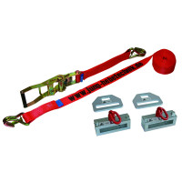 Die Gabelklemmen mit Spanngurten sind zum Verzurren und Sichern der Ladung. Einfach die Gabelschuhe hinter der Last am Stapler befestigen. Gabelklemmen vor die Ladung auf die Staplergabeln aufstecken, mit den mitgelieferten Gurten verzurren und gesichert transportieren.