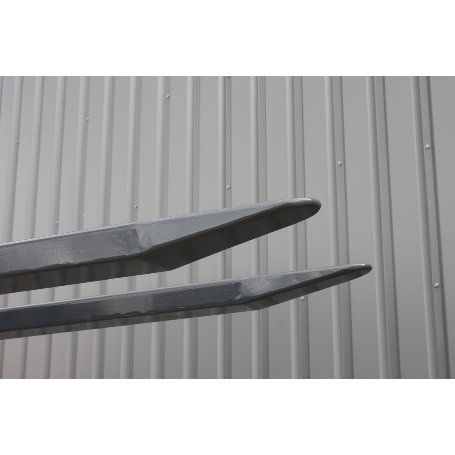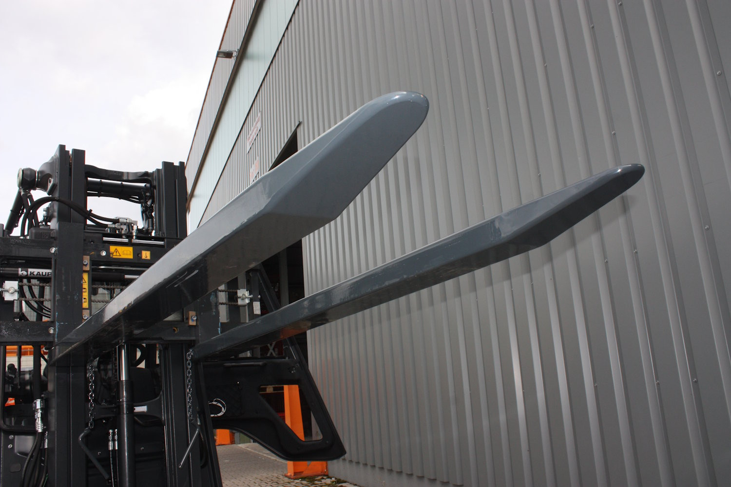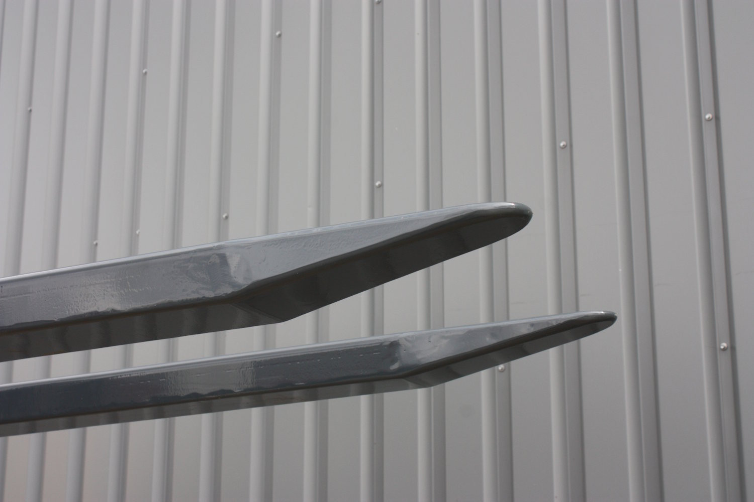 - Präzises Einfahren: Die Gabelspitze ist seitlich sowie nach oben und unten verjüngt, was das Aufnehmen von Paletten erleichtert und Beschädigungen minimiert.