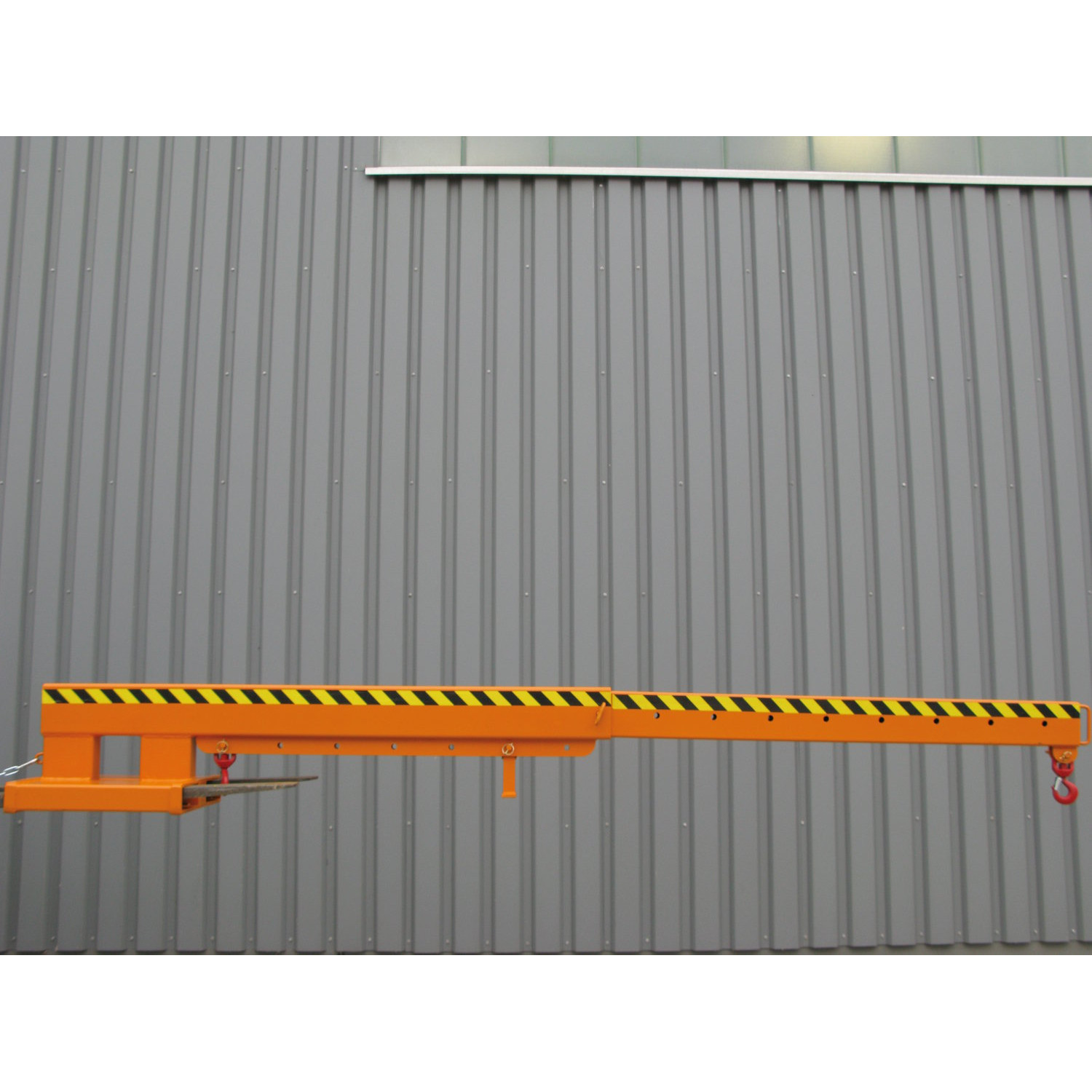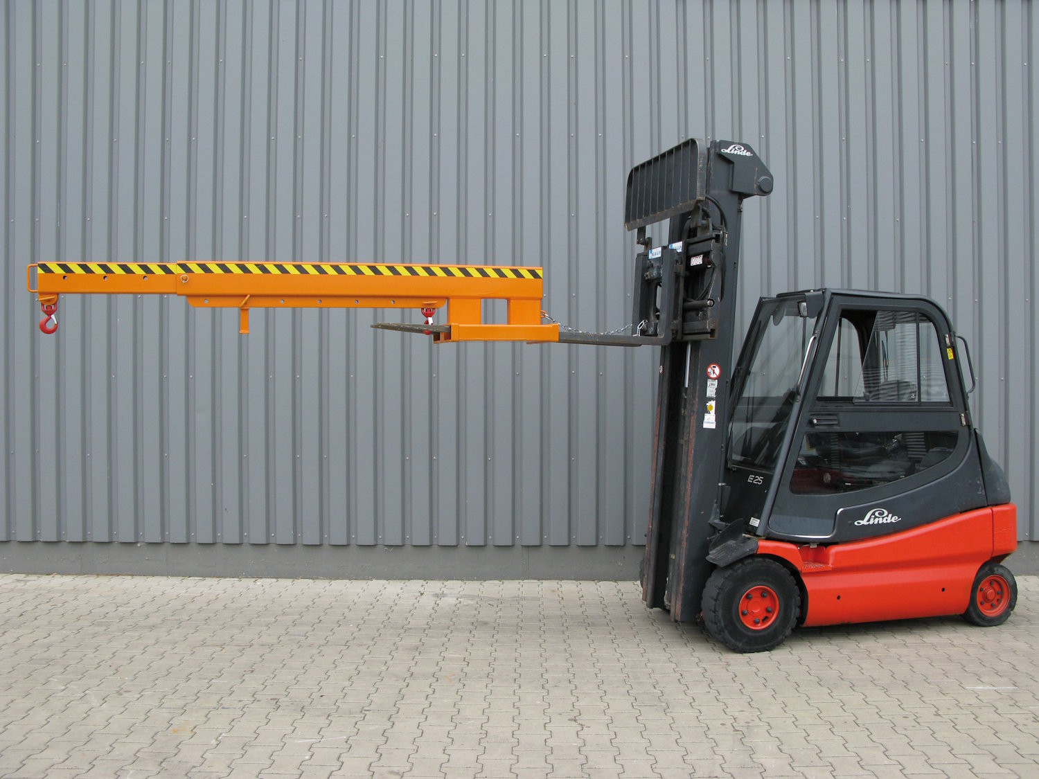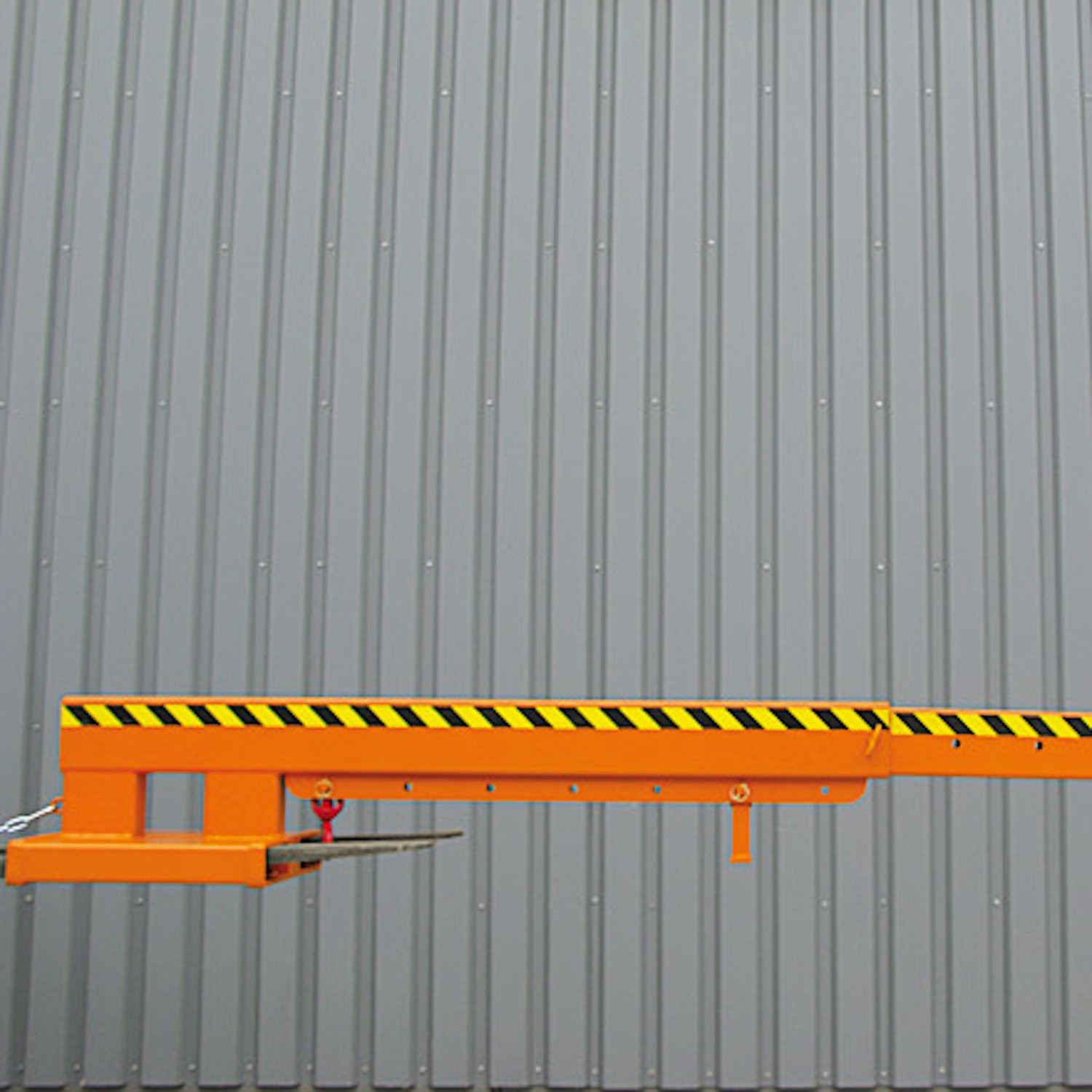 - Bauweise: Sicherheits-Kranarm aus massiven Profilrohren mit durchgehenden Einfahrtaschen.