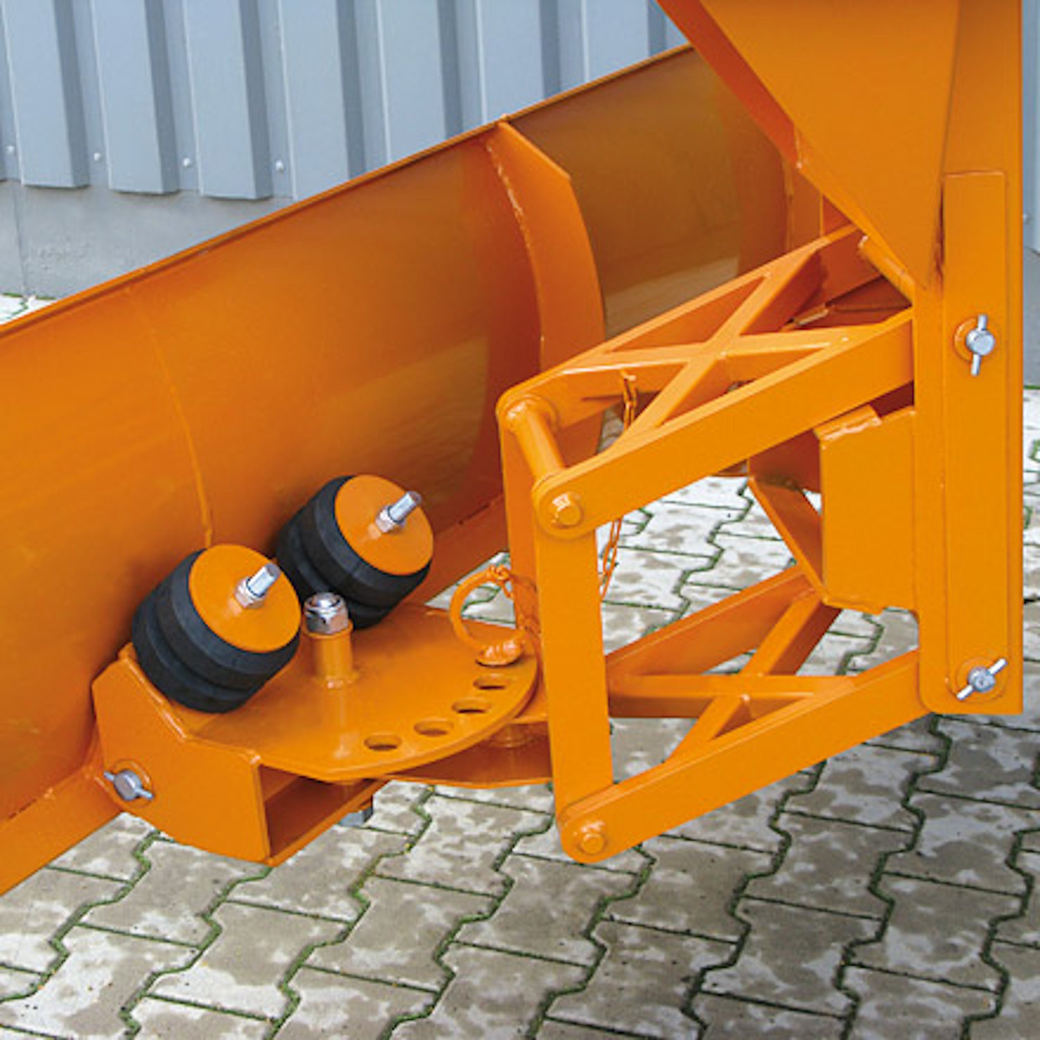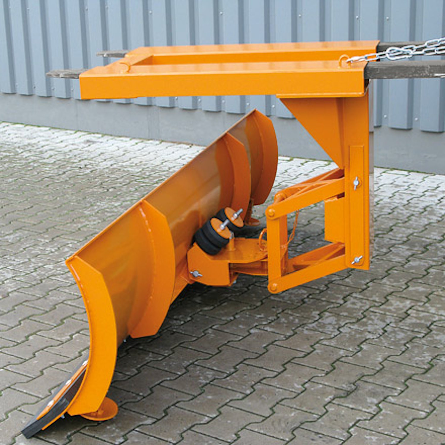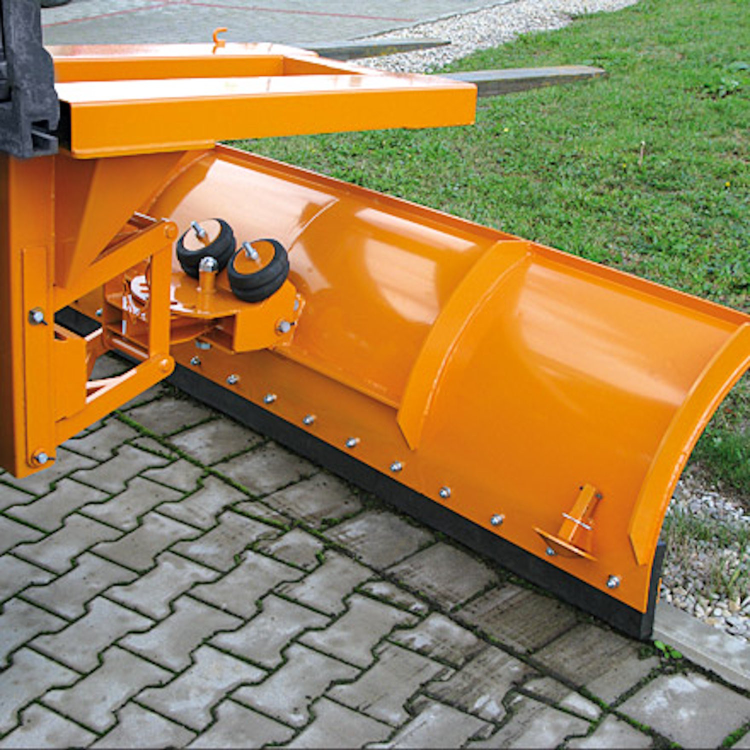 - Maximale Sicherheit: Die Federklappschare schützt beim Auftreffen auf verborgene Hindernisse (z. B. Bordsteinkanten), indem das Schild sicher zurückklappt.