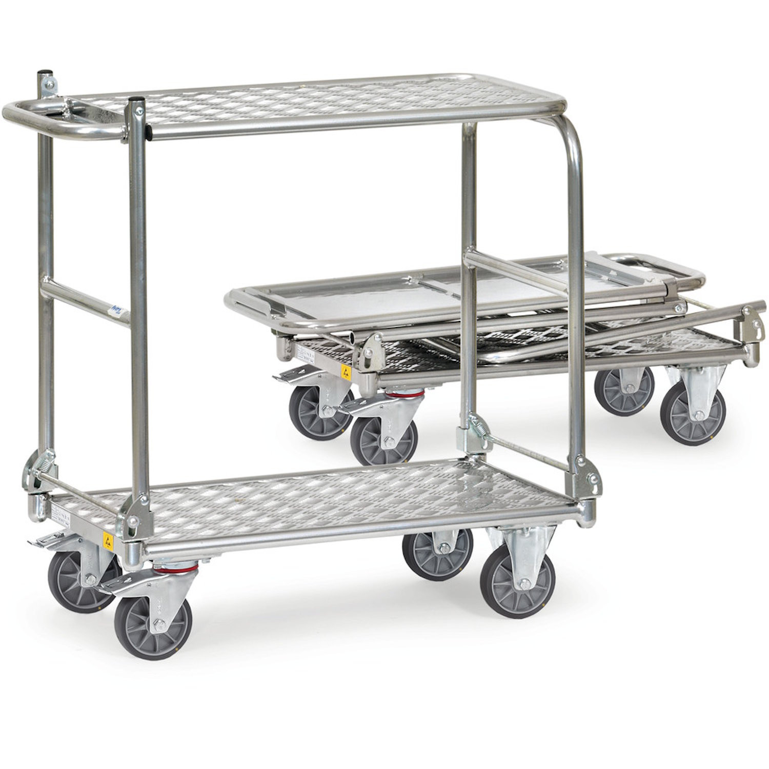 - Bauweise: Klapptischwagen aus Alurohr mit Aluplattform (sehr geringes Eigengewicht).