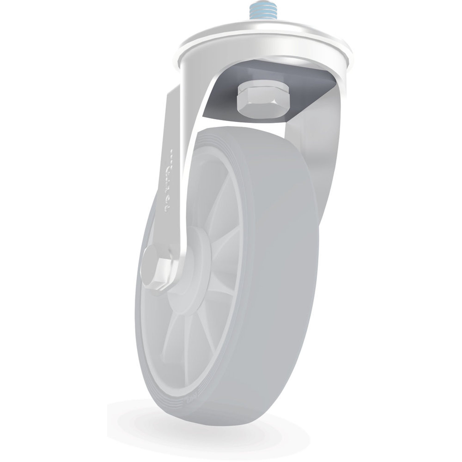- Funktion: Einschraubbare Fixierung zur nachträglichen Umwandlung von Lenkrollen in spurtreue Bockrollen.